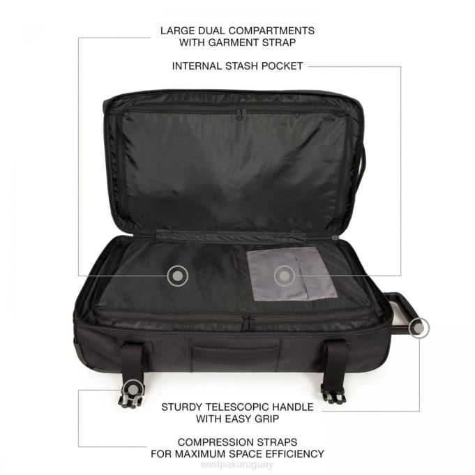 - mucho espacio en este maletín de dos pisos gracias a nuestras correas de compresión