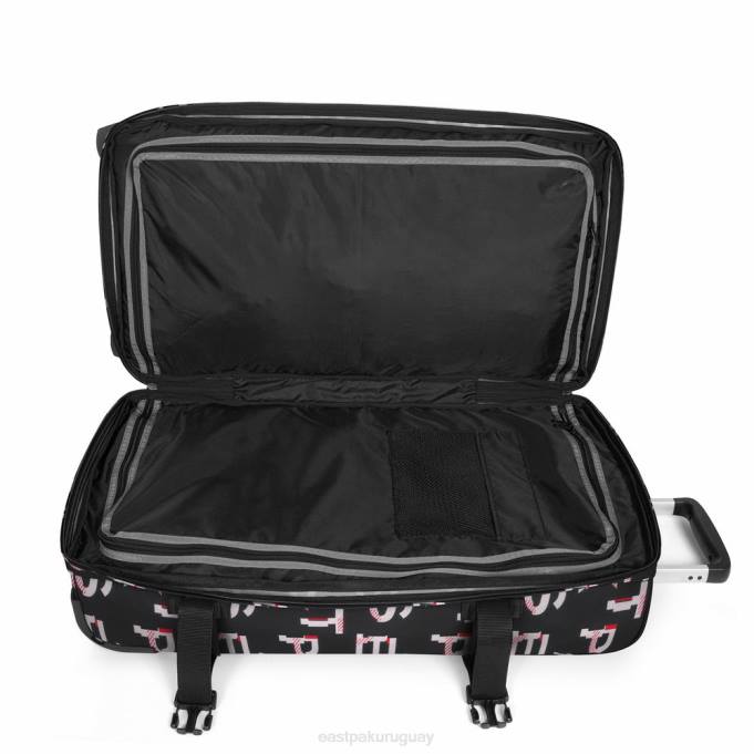 nuestro carrito de viaje grande se actualiza con aún más funciones. Carga los compartimentos dobles y asegura tus pertenencias con el candado integrado. este equipaje duradero cuenta con tubos de aluminio, patines protectores y grabado de diamantes en el asa.